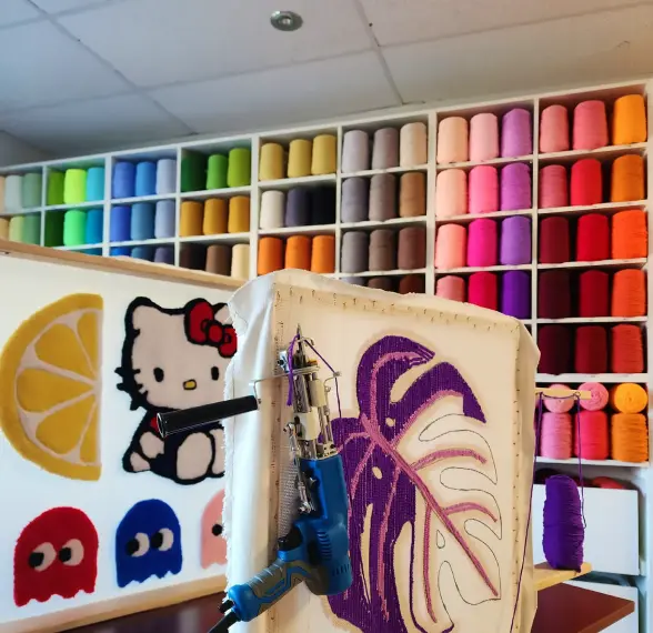 Alongside our art classes, we offer a wide range of premium tufting supplies and materials, from top-quality yarn to durable tufting guns, so you can bring your own ideas to life at home. And if you’re looking for a unique space to celebrate, our studio also hosts “Events with Love” – creative, memorable gatherings surrounded by art.